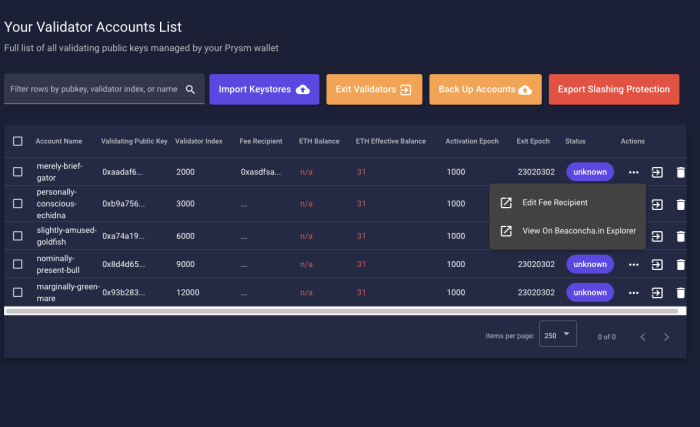 You can assign different wallet addresses to each of your validator public keys using JSON/YAML configuration. Fee recipient address assignments specified through JSON/YAML override those configured through the --suggested-fee-recipient flag. This method of configuration uses the following JSON/YAML schema: